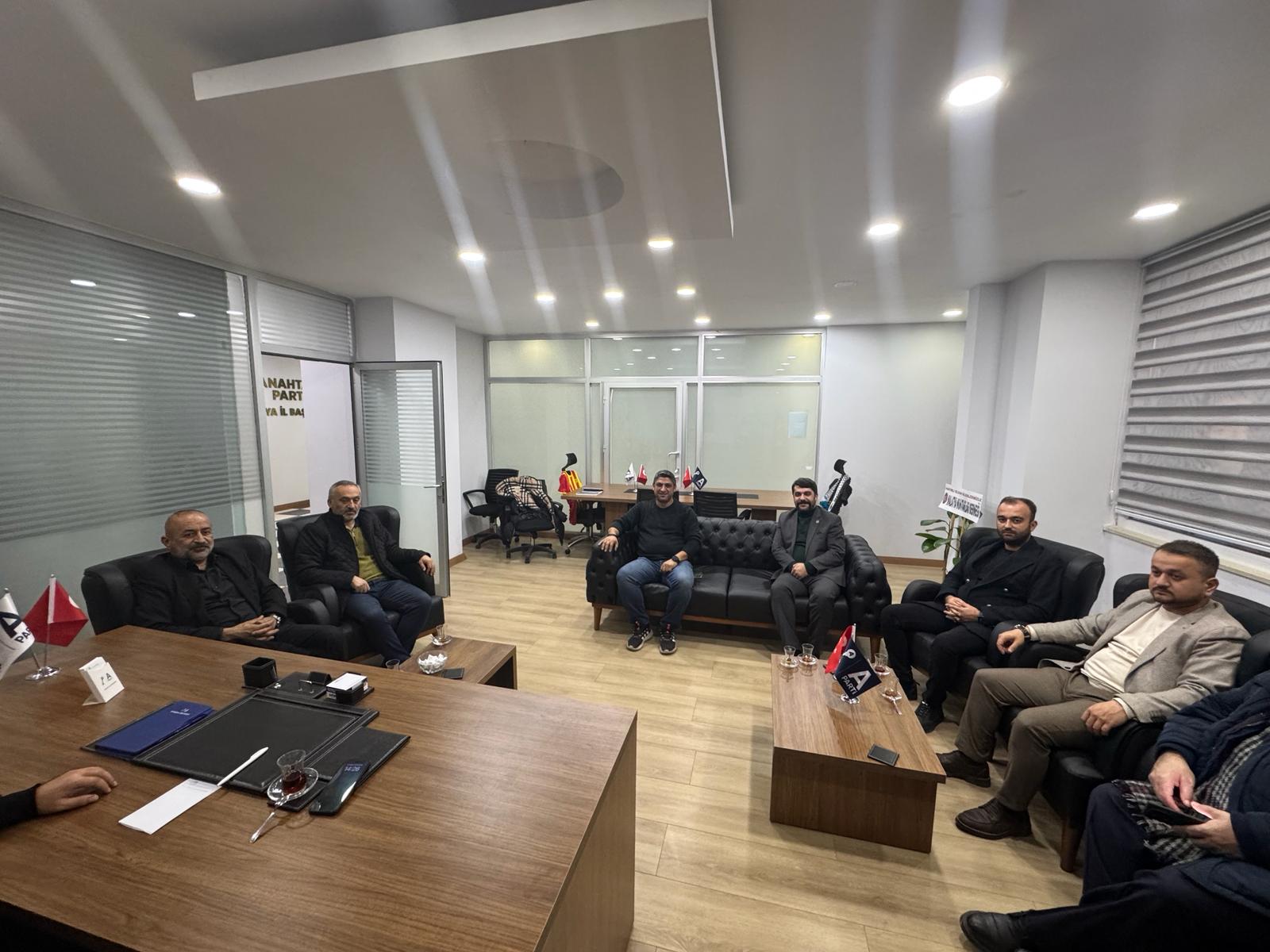 Görüşmede, İl Başkanı Erdoğan Zelyurt'a Teşkilat Başkanı Ercan Keleş, Yerel Yönetimler Başkanı Tolga Şahin, Türk Dünyası ve Uluslararası İlişkiler Başkanı Yunus Ulukaya ve STK Başkanı Abdulvahap Ortaç eşlik etti.