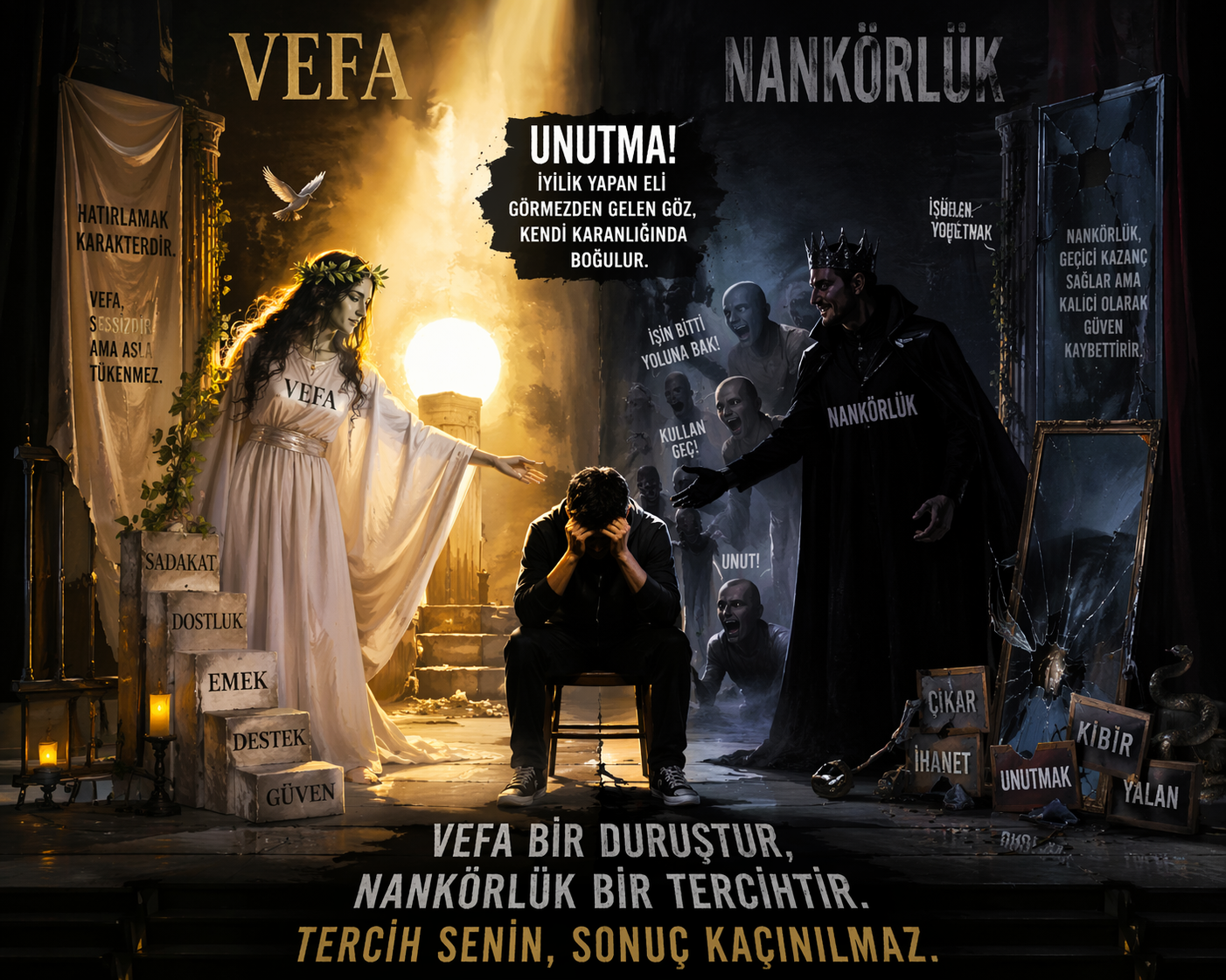 Sonuç olarak; vefa bir duruştur, nankörlük ise bir tercihtir. Ve bu tercih, insanın kim olduğunu er ya da geç ortaya koyar. Bugün alkışla yürüyen nankörlük, yarın yalnızlıkla sınanır. Çünkü unutulmaması gereken en net gerçek şudur: Vefa borçtur, nankörlük ise karakterin iflasıdır.